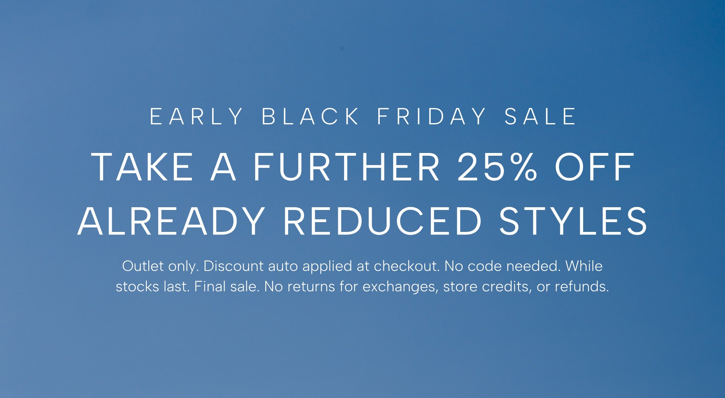 Our Early Black Friday Sale is on now. For a limited time, enjoy an extra 25% off already reduced styles.