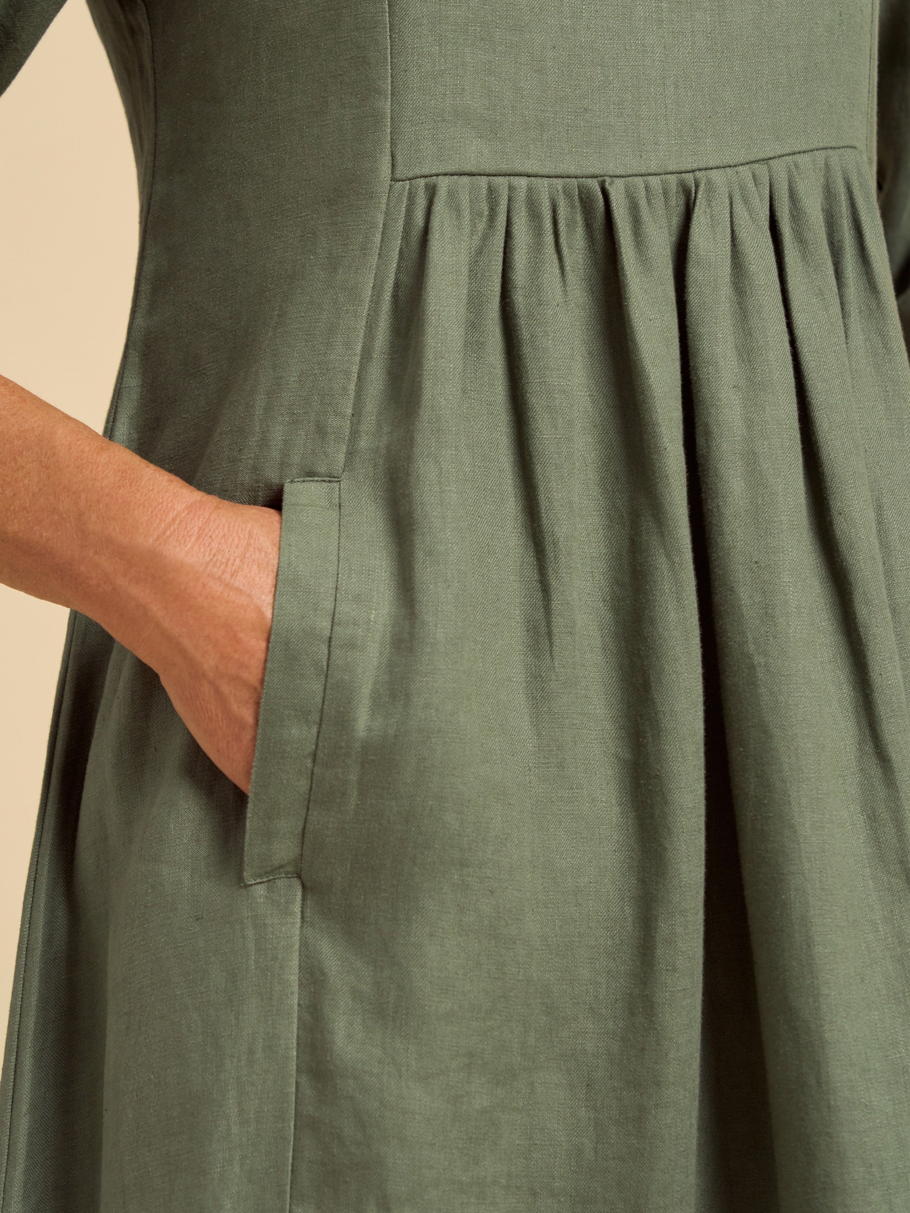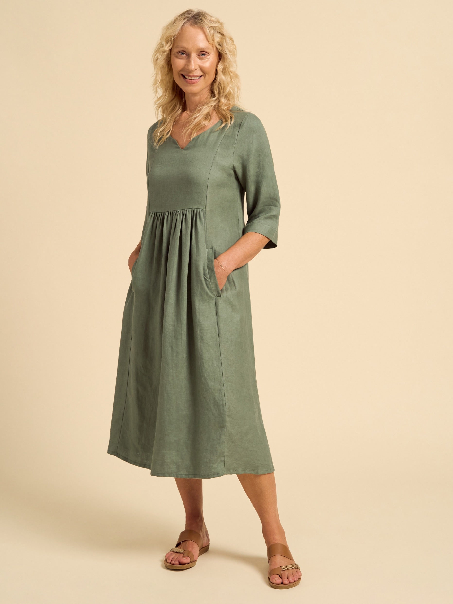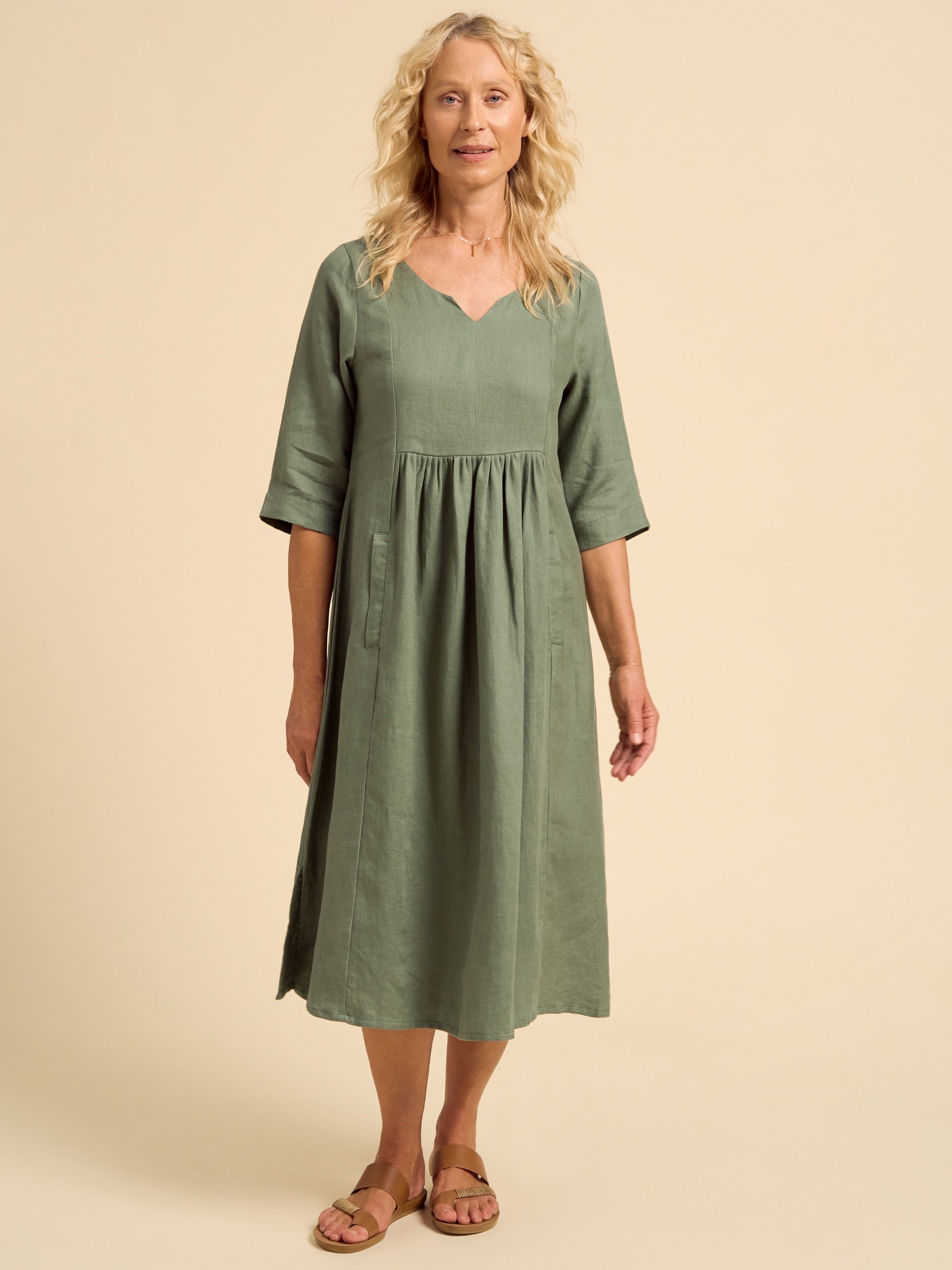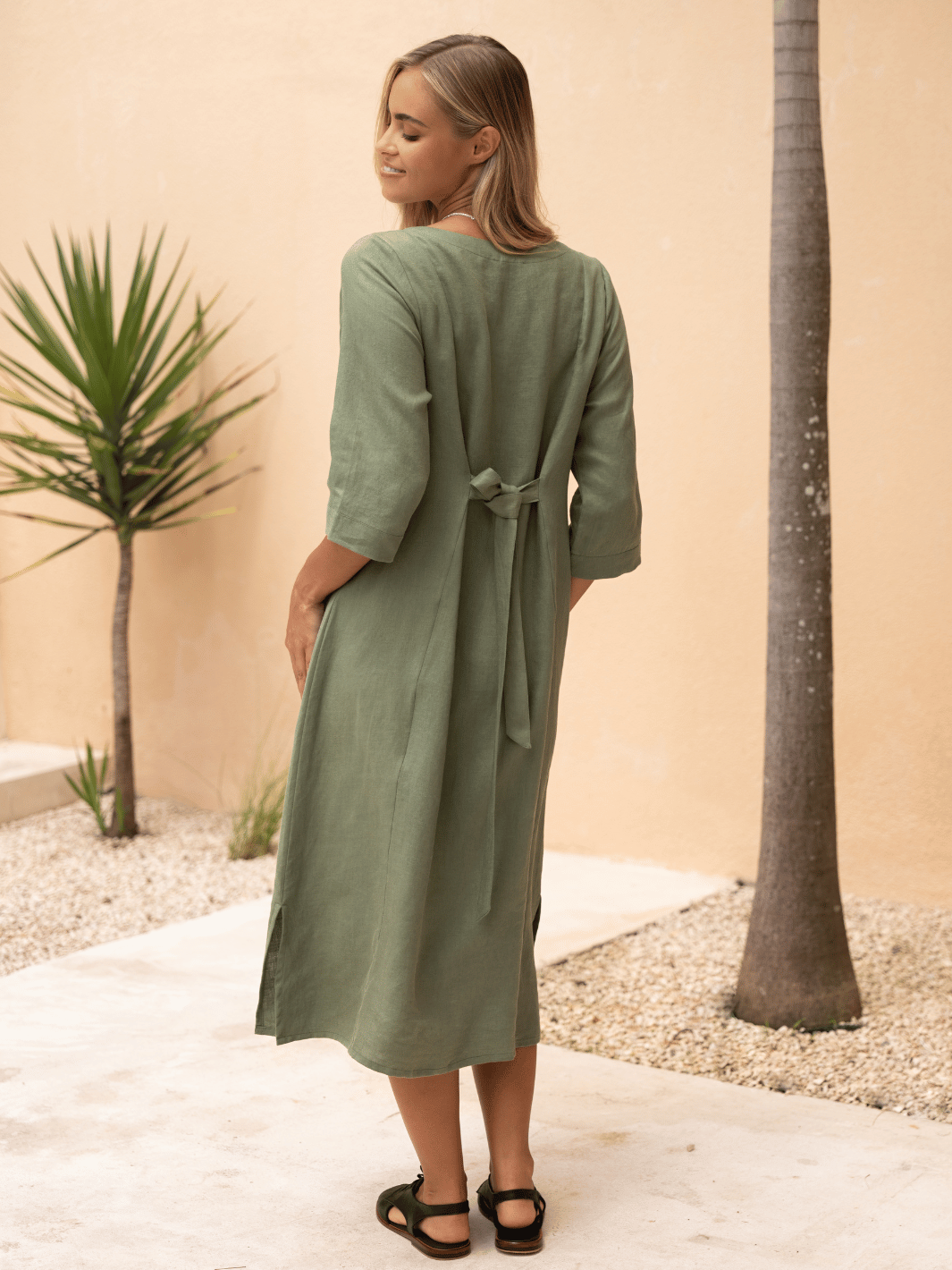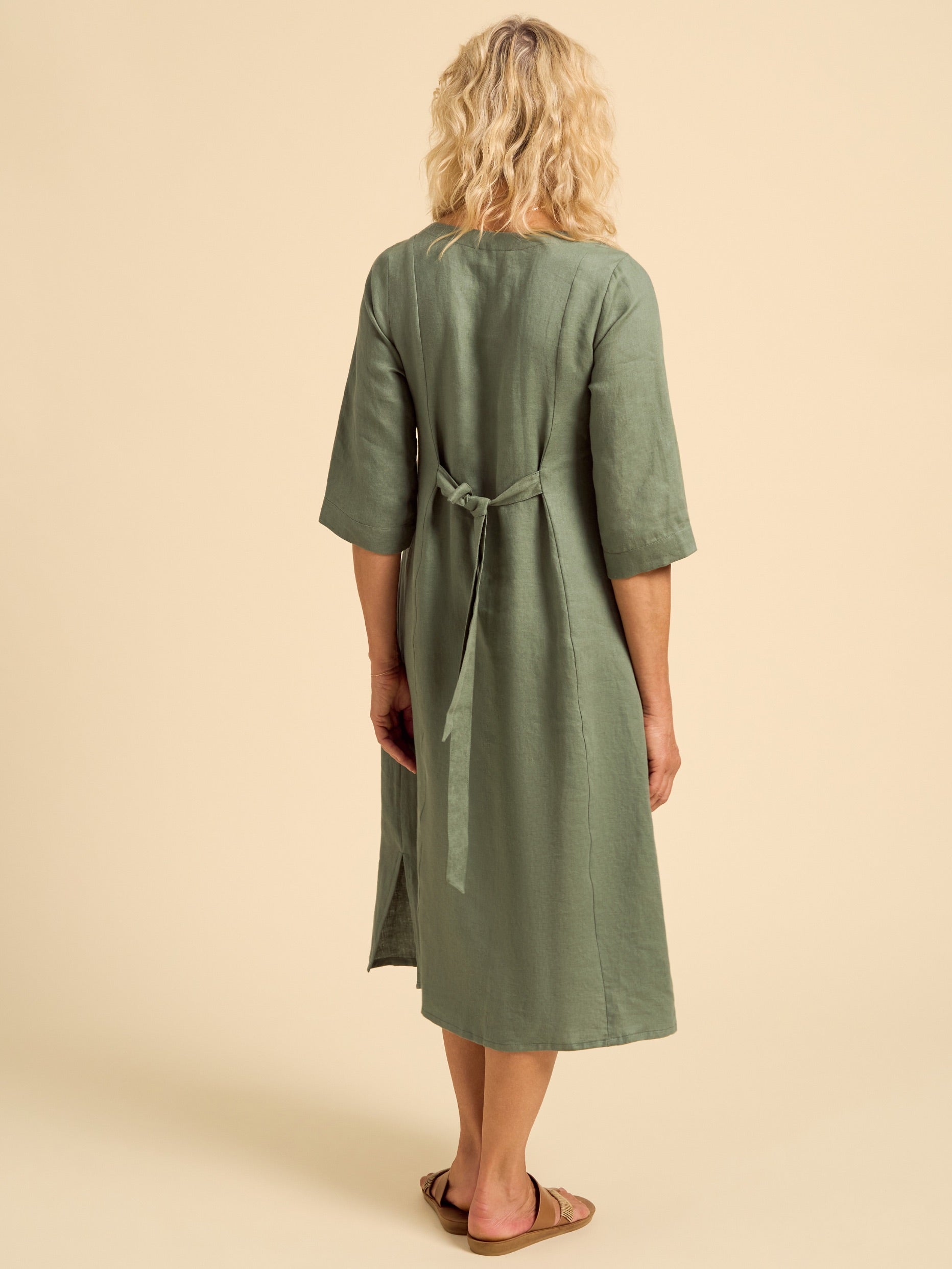 Made for days when ease and style go hand in hand, the Frankie Dress is crafted from breathable French linen in a durable twill weave. Designed to feel soft yet structured, it flatters gently with adjustable ties at the back and thoughtful sleeve coverage for all-day confidence.