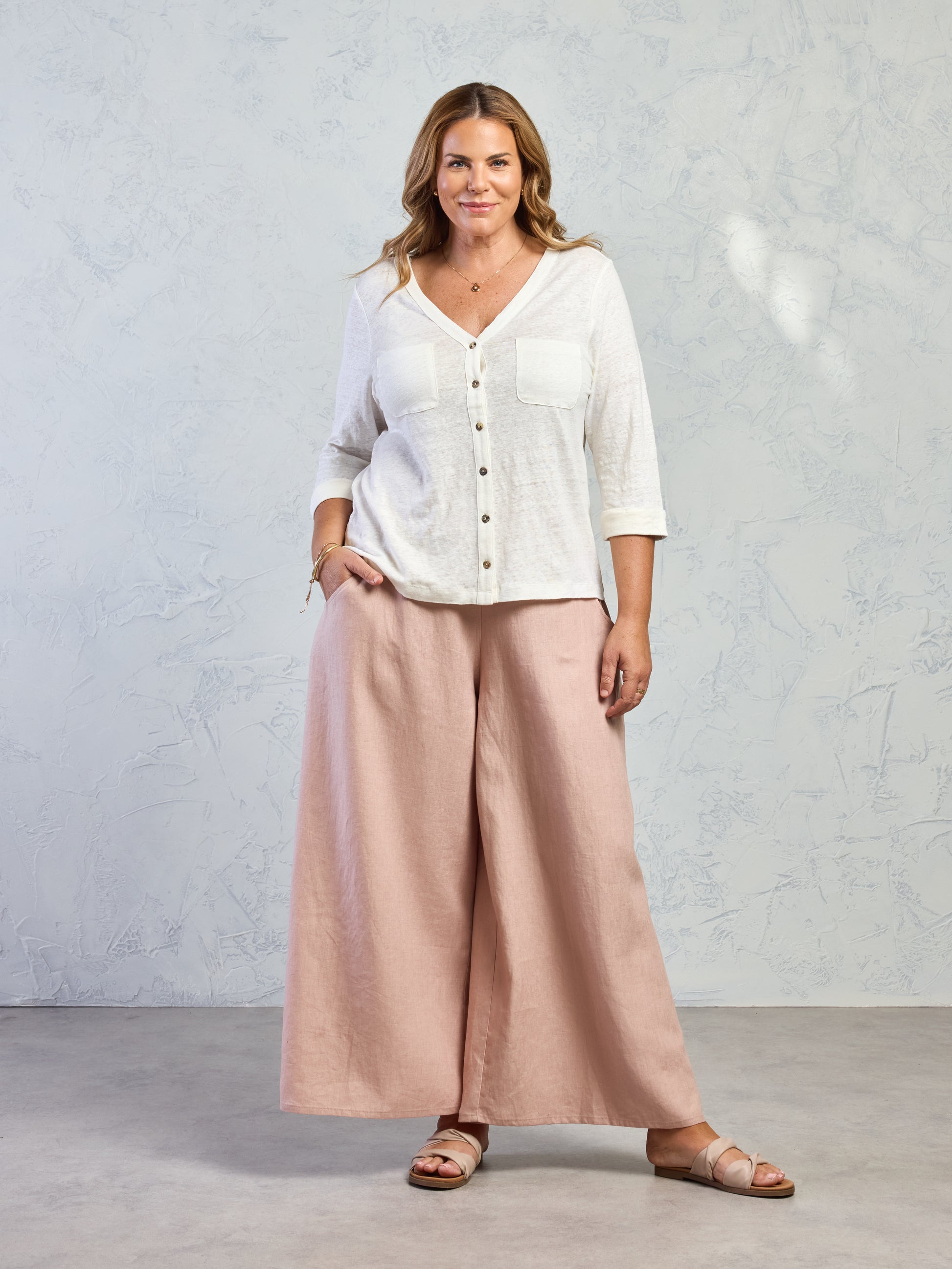 Marlee is a lightweight top cut from 100% OEKO-TEX® STANDARD 100 European linen jersey, beautifully textured and breathable. Designed with a soft A-line silhouette and flattering V-neckline, it offers relaxed refinement that moves with ease between comfort and style.
